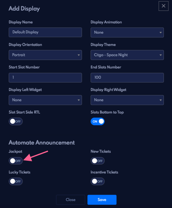 Jackpot announcement activate