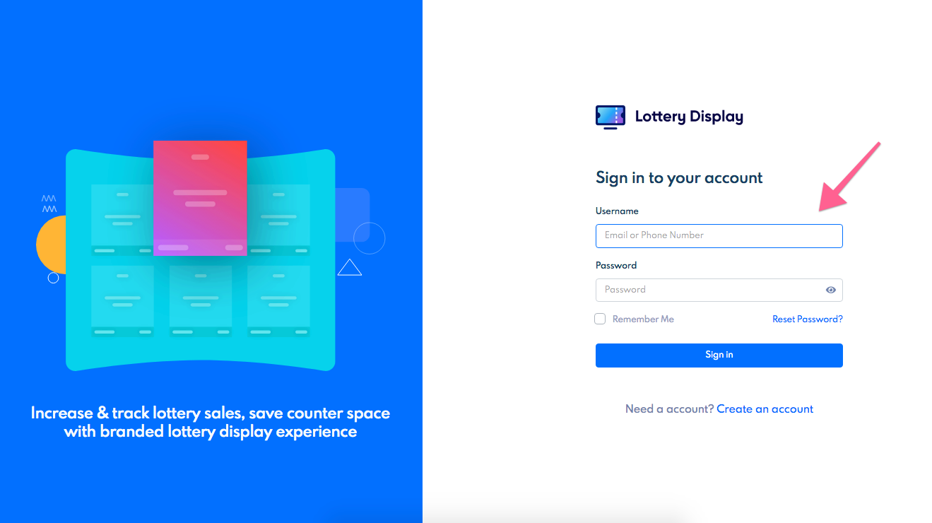 Now you have to follow the directions to sign in. https://help.lotterydisplay.com/document/troubleshoot/login-with-lottery-display-web-app/